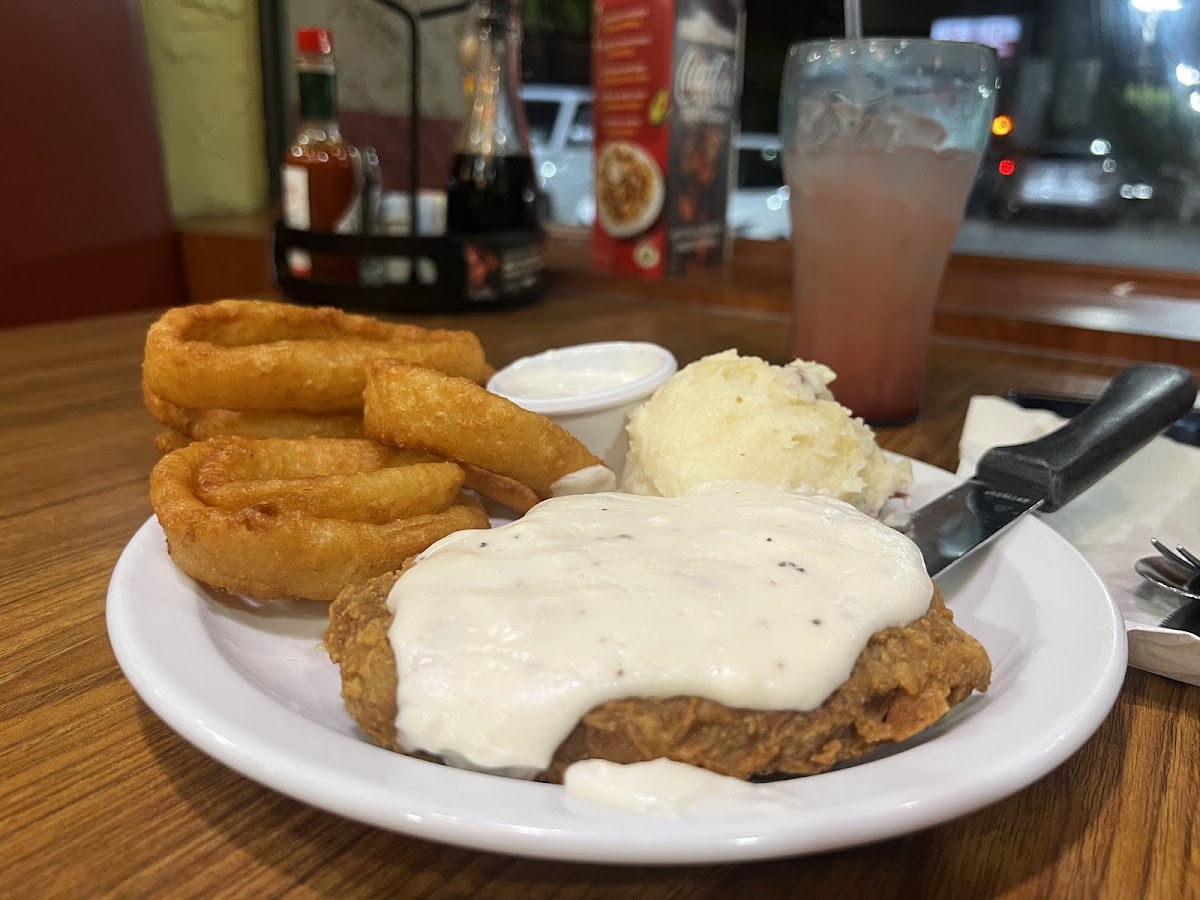 Country Fried Steak Onion Rings Mashed Potatoes Strawberry Lemonade